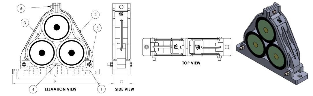Trefoil Cable cleats are used for high voltage single core cables, wherein the current rating is high and Three core cables are not available. The trefoil cleats are used for laying single core cable in trefoil touching formatting which helps to maintain magnetic symmetry thereby avoiding electromagnetic heating and loss of current and it is nullify the induced magnetic field of high voltage power cables.